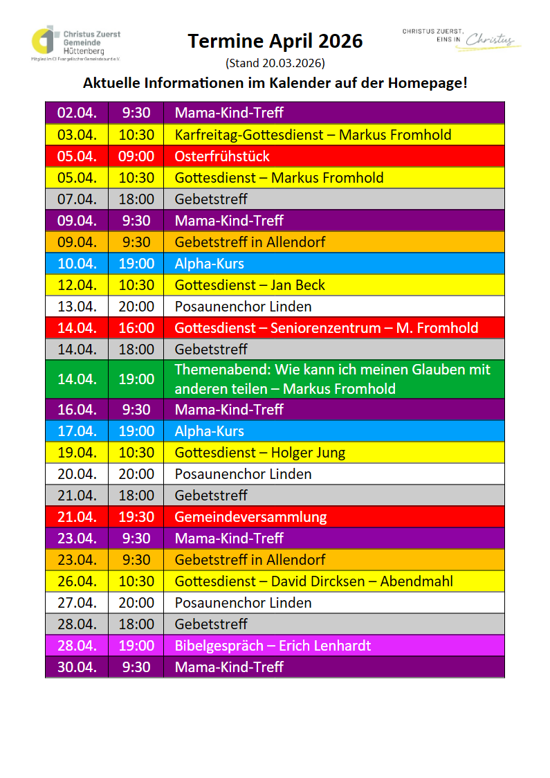 Der öffentlichen Google Kalender unserer Gemeinde mit weiteren Terminen: